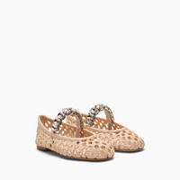 The ballerina is undoubtedly the most desired model for the new SS25 season, capable of lending allure to any look, from the most casual to the most formal. For women who don't want to renounce a maximalist touch, Casadei proposes the new ballerina, in the pink beach variant, made with vegan leather stripes and embellished with a maxi elastic bracelet of crystals, which fits perfectly around the instep. The leather sole ensures optimal comfort, making this ballerina the ideal choice for those who wish to face the day with style and class. Details - Synthetic woven - 70% Polyurethane, 17% Polyester and 13% Cotton - Leather Bottom. - 100% Made In Italy - Code: 1A290J0101C28013301