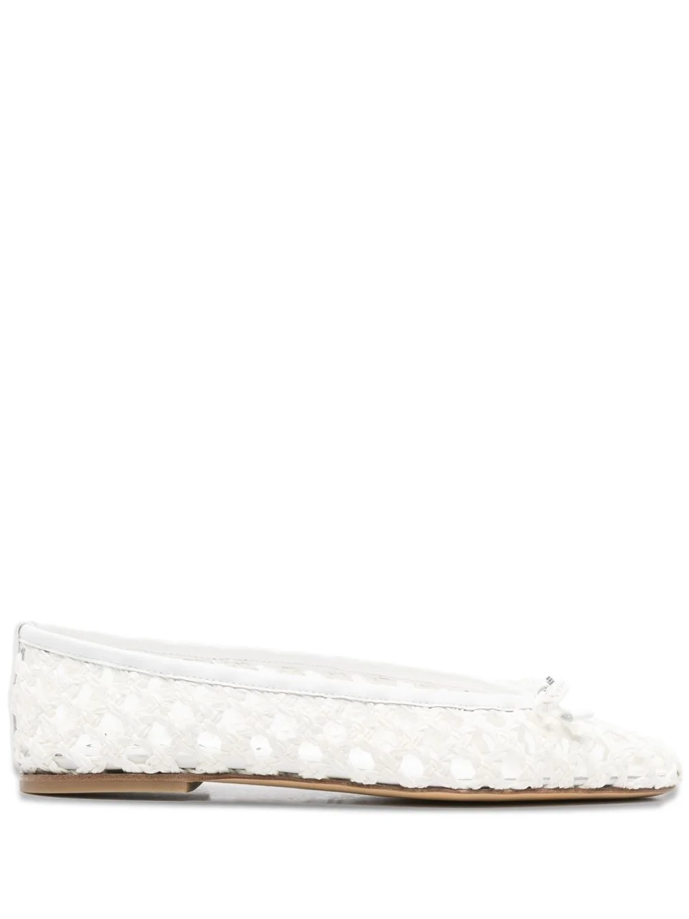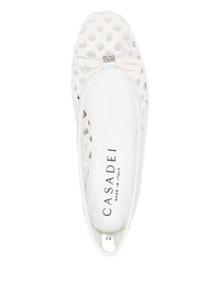 Versilia textured ballet flats Highlights - White - Openwork weave upper - Bow embellishment - Round toe - Flat leather sole Made in Italy Composition Outer: Rayon 100% Sole: Calf Leather 100% Lining: Calf Leather 100%