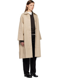 Water-repellent cotton gabardine trench coat. · Spread collar · Concealed button closure · Welt pockets · Raglan sleeves · Storm flap at back yoke · Central vent at back hem Supplier color: Beige 100% cotton. Made in France 252007F067002
