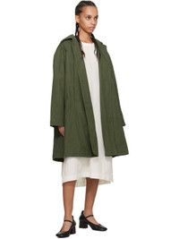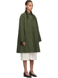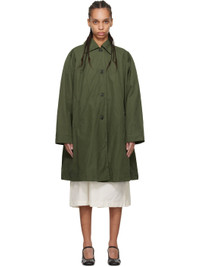 Cotton broadcloth coat. · Spread collar · Button closure · Welt pockets · Raglan sleeves · Darts at back collar · Patch pockets at interior · Full textured cotton poplin lining Supplier color: Olive Body: 100% cotton. Lining: 100% cotton. Made in France 251007F059001