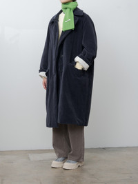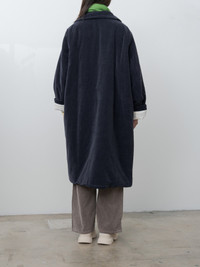 This version of the Milu coat features a soft, light velvet outer and is fully lined in cotton. Details include dropped shoulders, front flap pockets, corozo button closure, elongated sleeves that can be rolled up, and interior pockets. Relaxed fit. - Made in France - 100% Cotton / Lining: 100% Cotton - Available in Navy - The model is 5'8"/173 cm and wears size S