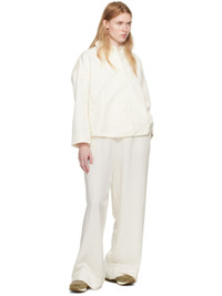 Crinkled viscose- and cupro-blend taffeta trousers. · Concealed drawstring at elasticized waistband · Two-pocket styling · Darts at back waistband Supplier color: Porcelain 57% viscose, 43% cupro. Made in Romania 241007F087013