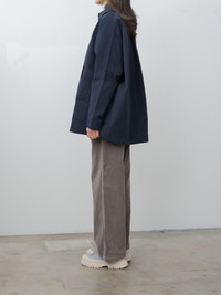 A boxy chore jacket from Casey Casey featuring a midweight cotton with a washed, textured finish. The design features a spread collar, dropped shoulders, corozo button closure, oversized patch pockets and slanted side pockets on the front and a box pleat at the back. Relaxed fit. - Made in France - 100% Cotton - Available in Navy - The model is 5'8"/173 cm and wears size S