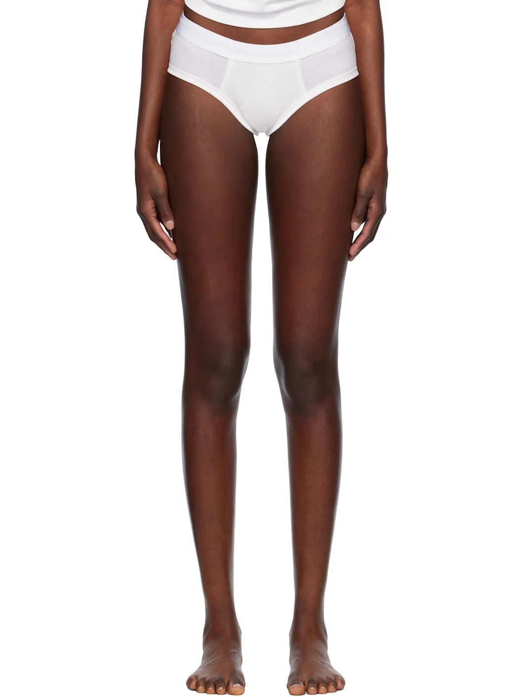 Stretch Tencel™ lyocell jersey briefs. Moisture-wicking. · Low-rise · Jacquard logo at elasticized waistband · Partially lined Supplier color: White 94% lyocell, 6% elastane. Made in Portugal 251425F074000