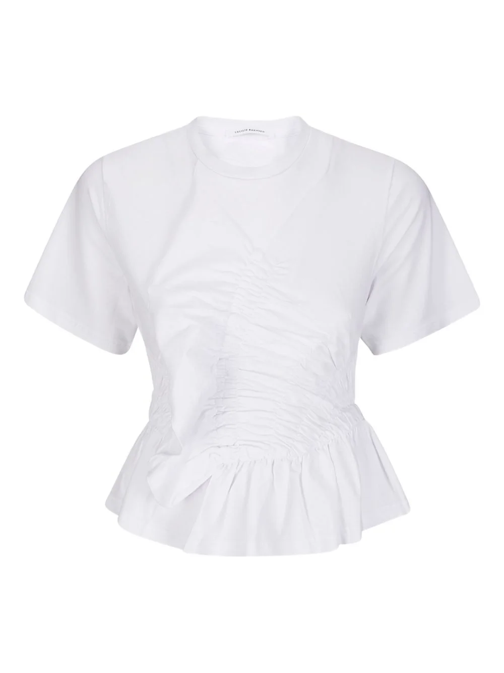 Ace ruffled T-Shirt Highlights - White - Ruffled hem - Short sleeves - Round neck - Gathered detail Imported Composition Cotton 90%, Elastane 10% Washing instructions Read Manufacturer Guidelines