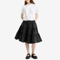The Cecilie Bahnsen Alec skirt redefines elegance with a modern edge. Crafted from deadstock crinkled black taffeta, its voluminous silhouette flows effortlessly, creating a sculptural yet weightless effect. A masterclass in texture and form, this piece embodies the brand’s signature romance—perfect for pairing with structured or soft separates alike. - 100% Polyamide - Drawcord Waist - Flower Toggle - Gentle Dry Clean