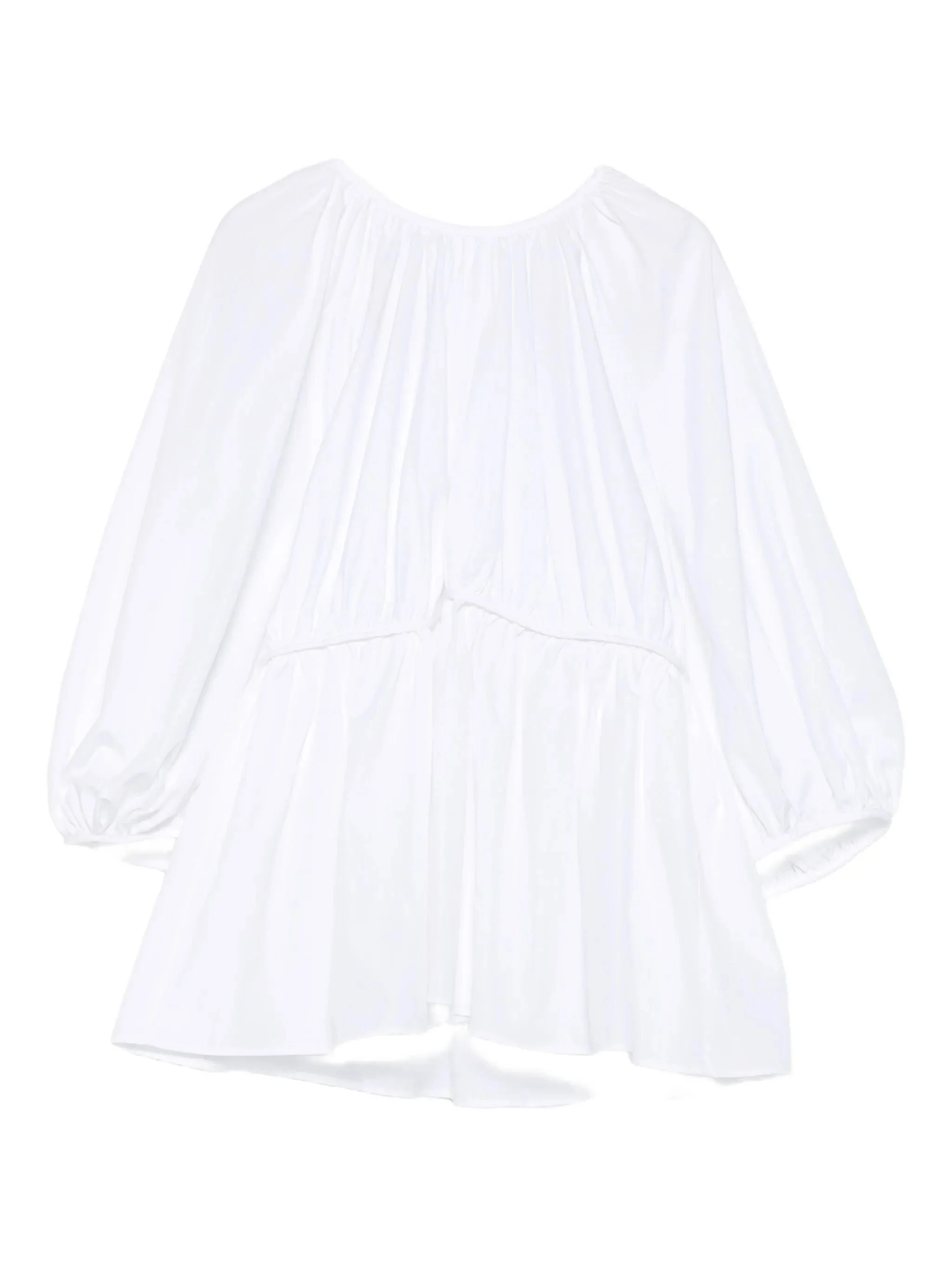 white gathered waist puff sleeves round neck cotton - Color: WHITE - Made in: Portugal - Designer Style ID: RTW11005 AMO WHITE Composition and care Cotton: 100.0%