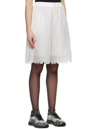 Semi-sheer nylon ripstop shorts. · Bungee-style drawstring at elasticized waistband · Two-pocket styling · Embroidered floral pattern and scalloped edge at cuffs · Full stretch viscose stain lining Supplier color: White Body: 100% polyamide. Lining: 95% viscose, 5% elastane. Made in Latvia 251002F088005