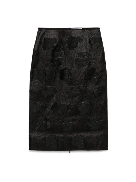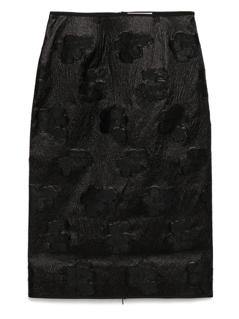 Arlo skirt Highlights - Black - Concealed rear hook and zip fastening - Mid-length - Central rear vent - Floral motif Imported Composition Outer: Silk 45%, Polyamide 42%, Polyester 13% Lining: Viscose 95%, Elastane 5% SIZE & FIT Measurement HIPS 38.58 in(98 cm) LENGTH 27.55 in(70 cm) WAIST 28.34 in(72 cm)