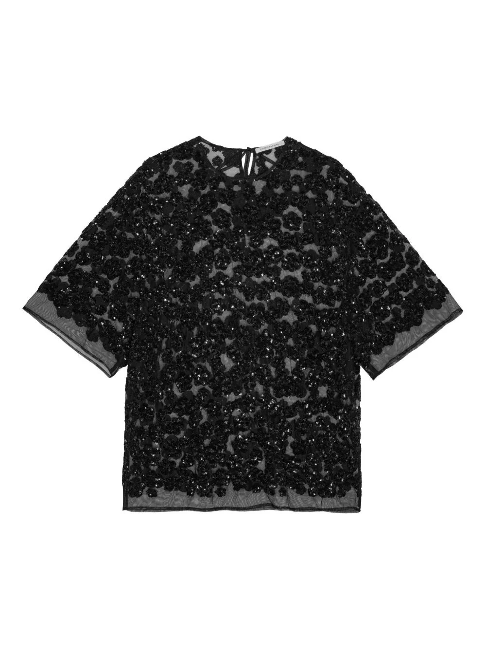 Asra blouse Highlights - Black - Rear tie fastening - All-over floral embroidery - Sequin embellishment - Short sleeves Imported Composition Outer: Recycled Polyester 56%, Polyester 27%, Polyamide 17% Lining: Viscose 100%