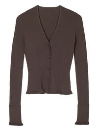Bessie ruffled cardigan Highlights - Brown - Ribbed knit - V-neck - Button fastening - Ruffled hem - Ruffled cuffs Made in Italy Composition Merino 100% Washing instructions Hand Wash