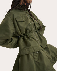 A couture-driven approach to traditional bomber styles, the Birdie jacket embraces exaggerated shape with its ruched sleeves and cinched waistline. Tonal floral motifs decorate the drawcords, zippers and pockets in a nod to Cecilie Bahnsen's feminine aesthetic. Designer color: olive Zip closure Adjustable drawcord waist Cargo flap pockets Ruched sleeves (back) Smocked trim (collar, cuffs) Self: 100% recycled polyamide (nylon) Wadding: 100% polyester Lining: 100% cupro Dry clean only Made in Portugal Size & Fit Fits true to size Model (wearing size UK 8 / US 4): 5ft 10in tall UK 6 = US 2 / XS UK 8 = US 4 / S UK 10 = US 6 / M UK 12 = US 8 / L UK 14 = US 10 / XL