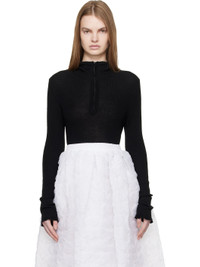 Rib-knit merino wool hoodie. · Positive Luxury Butterfly Mark-certified · Hood at stand collar · Half-zip closure · Ruffled trim at hem and cuffs Supplier color: Black 100% merino wool. Made in Italy 261002F097002