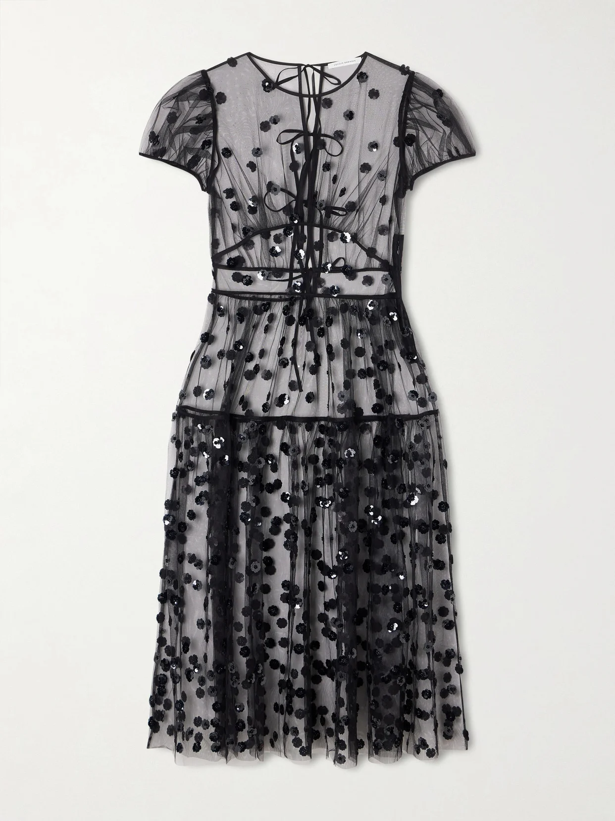 Cbnanna Sequin-embellished Polka-dot Tulle Midi Dress