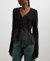 DETAILS Cashmere cardigan Regular fit Long sleeves V-neckline Front button fastening Silk organza-ruffled placket Peplum hem SIZE & FIT Model is 180cm/5'11"; Chest: 76cm; Waist: 60cm; Hip: 88.5cm and wears a size 8 COMPOSITION & CARE 97% Cashmere; 3% Wool Contrast: 100% Silk Hand wash only. Gentle dry clean