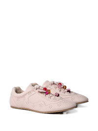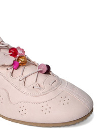 beaded lace-up leather sneakers Highlights - Blush pink - Leather - Perforated detailing - Round toe - Lace-up fastening - Beaded laces Imported Composition Sole: Rubber 100% Lining: Fabric 100% Outer: Suede 100%