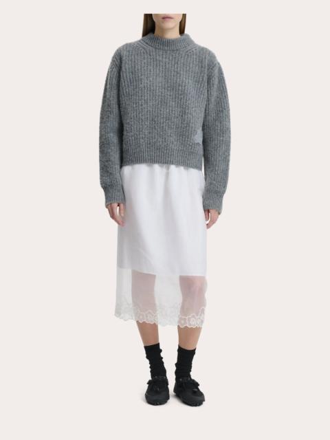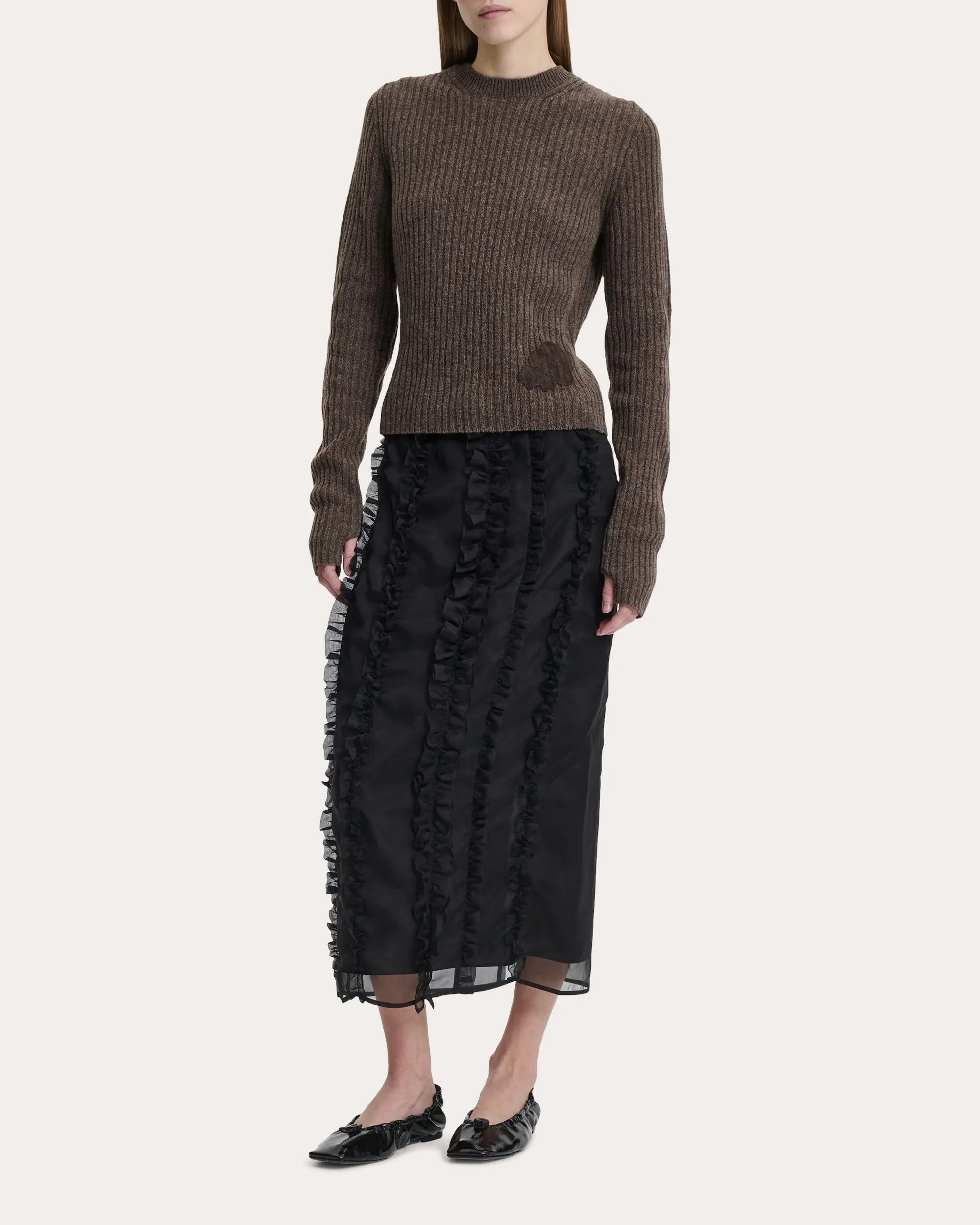 Brought to life in a Nordic-style rib knit, the Blas sweater embraces Cecilie Bahnsen's feminine aesthetic with embroidered floral applique at one side. The wool silhouette is finished with long thumbhole sleeves for added warmth. Designer color: brown Pull-on Thumbhole sleeves Embroidered floral applique Nordic rib knit 100% RWS wool Dry clean Made in Romania Size & Fit Garment measurements (size S): 23.2in long from high point of shoulder to hem, 17.3in chest width, 14.76in hem width, 14.2in sleeve length Garment measurements (size M): 23.6in long from high point of shoulder to hem, 18.1in chest width, 14.6in sleeve length Garment measurements (size L): 24in long from high point of shoulder to hem, 18.9in chest width, 15in sleeve length Model (wearing size S): 5ft 8in tall Fits true to size UK 6 = US 2 / XS UK 8 = US 4 / S UK 10 = US 6 / M UK 12 = US 8 / L UK 14 = US 10 / XL