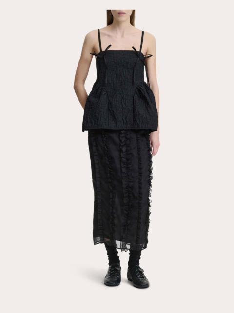 Light and ethereal, the Bria skirt is brought to life in subtly textured liquid myrtia. The sheer, floral embroidered hem creates gauzy dimension. Designer color: soil brown Drawstring waist Floral drawcord Center back slit Sheer hem with embroidered florals Liquid myrtia Self: 55% polyamide, 45% polyester Lining: 100% cupro Dry clean Made in Latvia Size & Fit Garment measurements (size UK 6 / US 2): 28.4in long, 25.2in waist Garment measurements (size UK 8 / US 4): 28.4in long, 26.8in waist Garment measurements (size UK 10 / US 6): 28.4in long, 28.3in waist Garment measurements (size UK 12 / US 8): 28.4in long, 29.9in waist Garment measurements (size UK 14 / US 10): 28.4in long, 31.5in waist Garment measurements (size UK 16 / US 12): 28.4in long, 33.1in waist Model (wearing size US 4 / UK 8): 5ft 8in tall Fits true to size UK 6 = US 2 / XS UK 8 = US 4 / S UK 10 = US 6 / M UK 12 = US 8 / L UK 14 = US 10 / XL