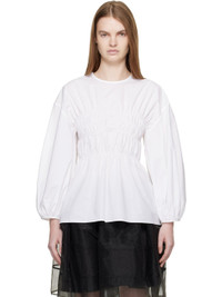 Cotton poplin blouse. · Positive Luxury Butterfly Mark-certified · Round neck · Shirring at front and back · Peplum hem · Dropped shoulders · Balloon sleeves · Gathering at cuffs · Self-tie fastening at back collar Supplier color: White 100% cotton. Made in Portugal 261002F107001