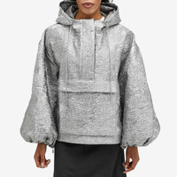 Rooted in Scandinavian minimalism yet enriched with couture-level detail, Cecilie Bahnsen deals in transformative fashion. The voluminous Orion Jacket brings bigger proportions to your layering wardrobe, crafted from bespoke silver kaze matelasse with classic anorak design features. Finished with billowing sleeves and ribbon details on each side, it’s a true distillment of Cecilie Bahnsen’s inspired design. - 39% Polyester, 37% Metallised Polyester, 24% Polyamide - Drawstring Hood - Front Pocket - Ribbon Details