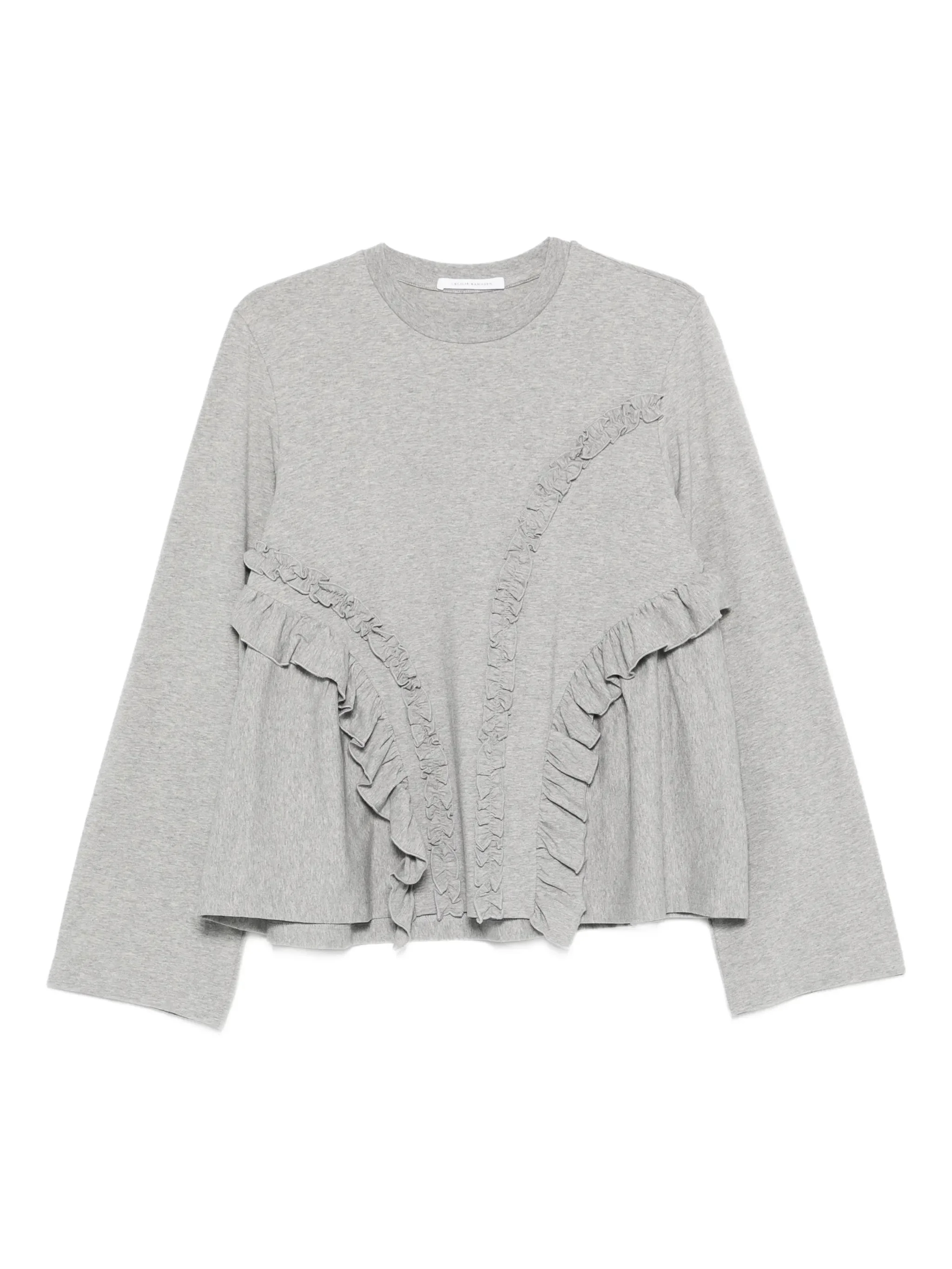 grey ruffled details round neck long sleeves flared hem - Color: GREY - Made in: Portugal - Designer Style ID: RTW19006 BALVA GREME Composition and care Cotton: 90.0%, Elastane: 10.0%