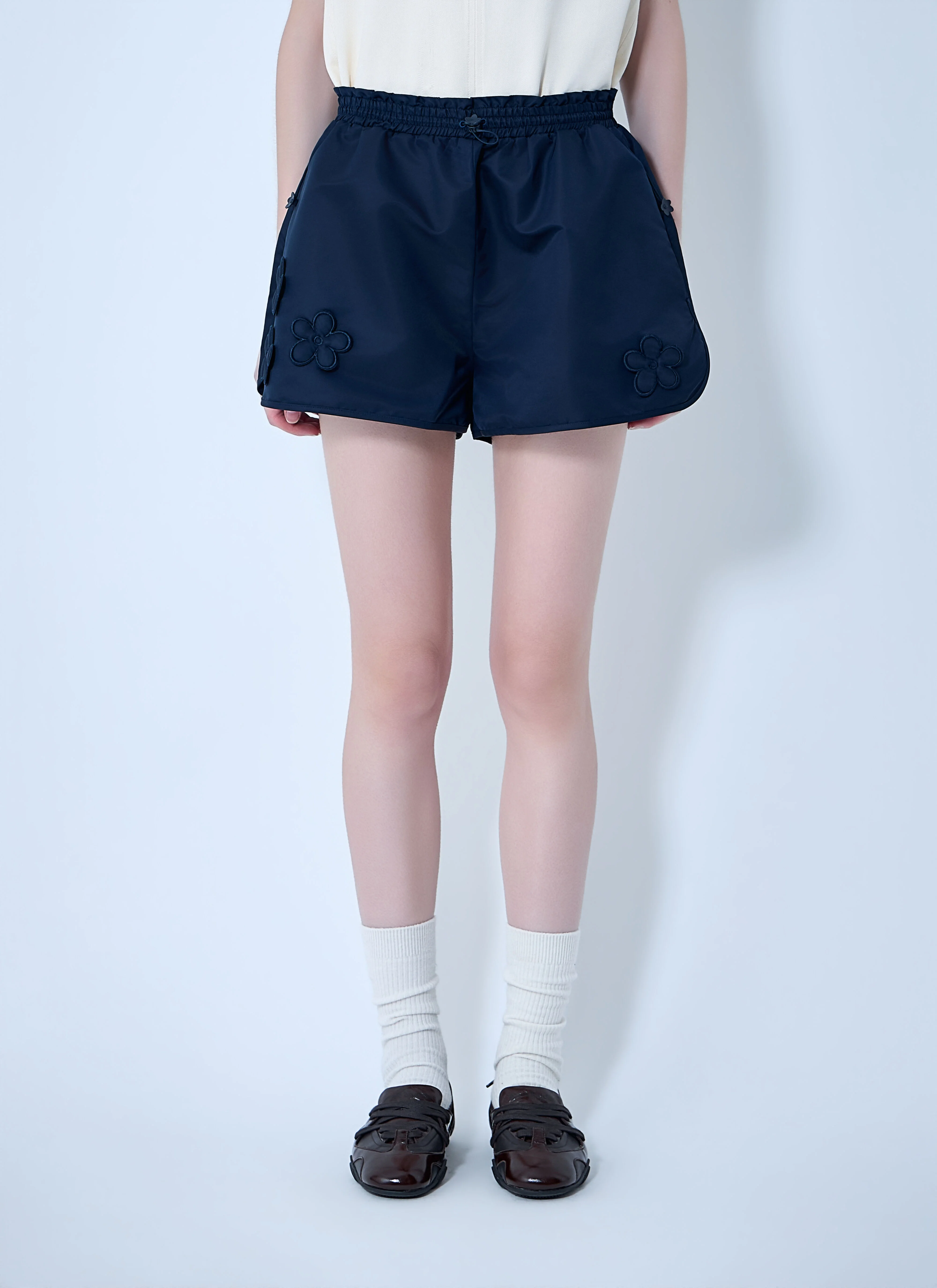 Elasticated waist shorts with floral embroidery. - Elasticated waistband - Floral embroidery detail - Side slit pockets - 100% Recycled Polyamide - Color: Navy - Code: 4.25RTW18004 CBCOLETTE SHORTS