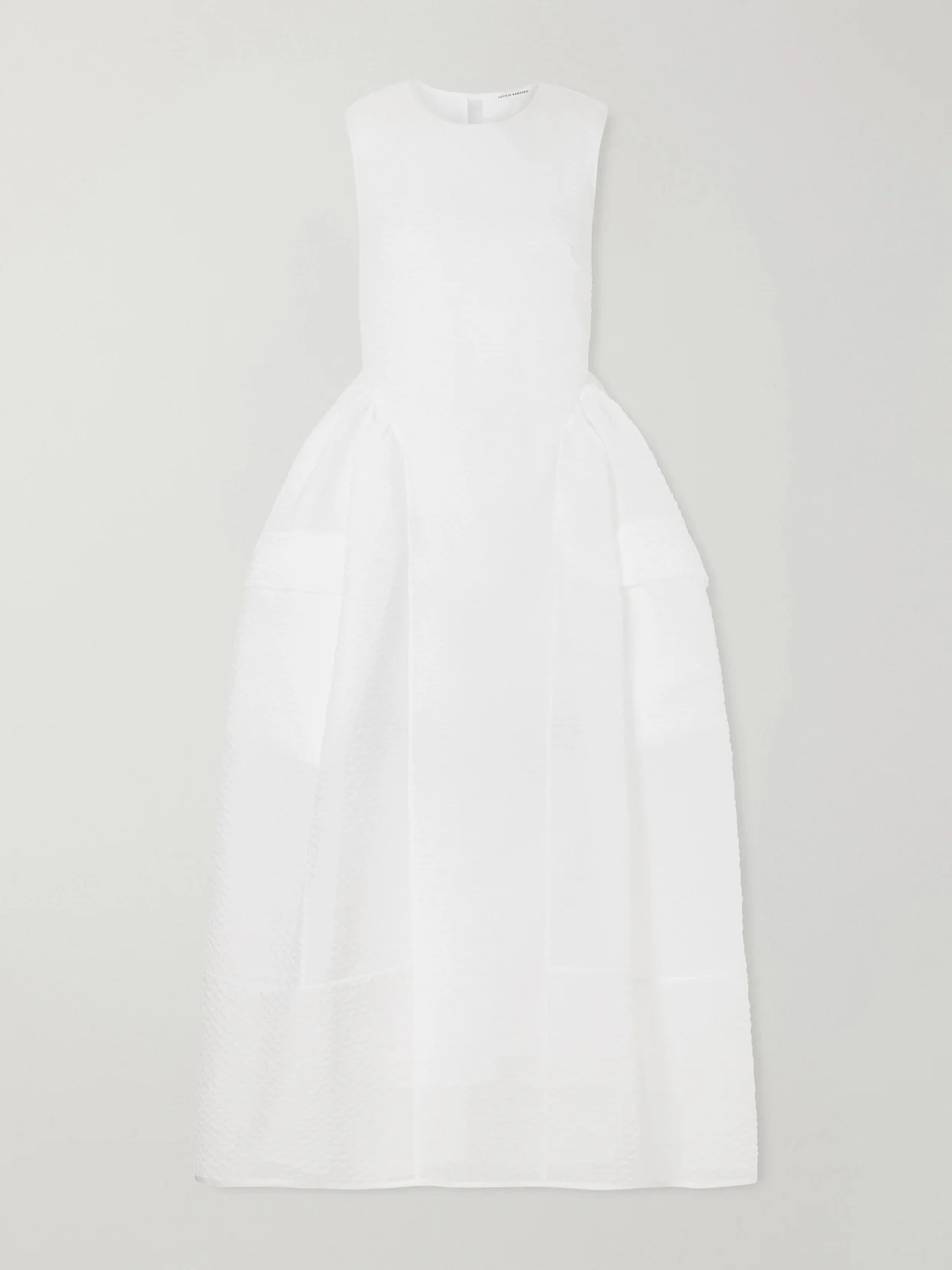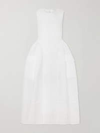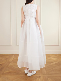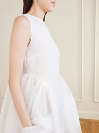 Cecilie Bahnsen's 'Duana' dress is part of the Spring '26 'Heartfelt' collection, where femininity meets utilitarian details. Crafted from cotton-blend cloque, it features buckle-fastening straps at the front and a voluminous skirt. Reference the runway and style it with sneaker-ballet flat hybrids.