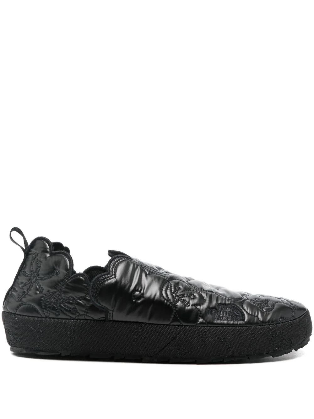 floral quilted mules Highlights - Black - Floral quilting - Pull-tab at the heel - Round toe - Flat sole Imported Composition Outer: Fabric 100% Lining: Fabric 100% Sole: Rubber 100%