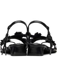 Crinkled leather heeled sandals. · Positive Luxury Butterfly Mark-certified · Open square toe · Thong-style strap at vamp · Crisscrossing straps and floral appliques at vamp · Logo patch at padded footbed · Covered block heel with rubber injection · Treaded rubber sole · Heel: H1" Supplier color: Black Upper: leather. Sole: rubber. Made in Portugal 261002F125000