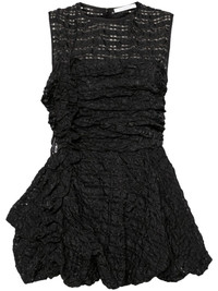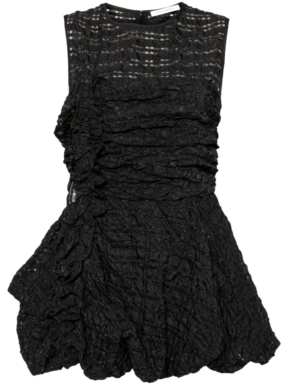 Gianna top Highlights - Black - Seersucker texture - Ruffle detailing - Ruching detailing - Semi-sheer panels - Crew neck - Sleeveless - Concealed rear zip fastening - Partial lining - Bubble hem Imported Composition Lining: Cupro 53%, Polyester 47% Outer: Polyester 85%, Polyamide 15% SIZE & FIT Model measurements Height 5 ft 9 in(1.76 m) Bust/Chest 31.1 in(79 cm) Hips 35.03 in(89 cm) Waist 24.4 in(62 cm) Measurement LENGTH 29.33 in(74.5 cm) WAIST 32.55 in(82.7 cm) BUST 37.79 in(96 cm) FittingInformation Designed for a close fit at the chest and waist with a loose fit at the hip Made from a midweight non-stretch fabric This piece fits true to size – take your usual size