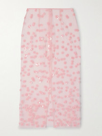 Cecilie Bahnsen's 'Gus' skirt is covered with shiny sequins and beads arranged to resemble cherry blossoms. It's cut in a chic, column shape from sheer tulle and comes in a pretty pastel-pink shade - mix and match yours with tonal pieces from the Scandi brand's latest collection.