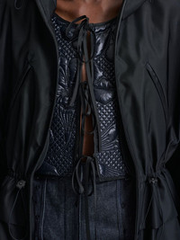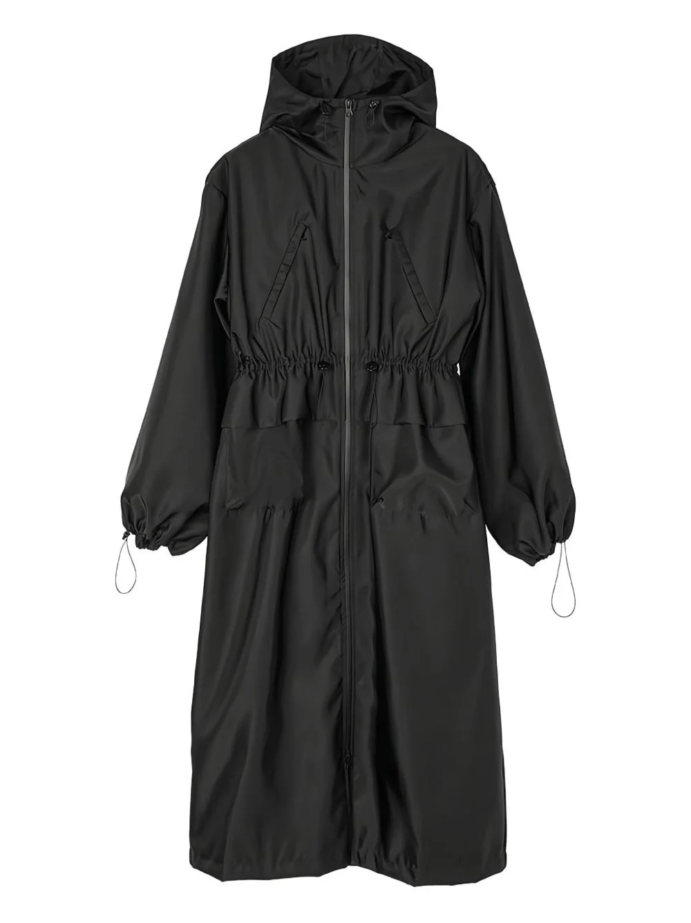 hooded drawstring parka coat Highlights - Black - Drawstring waist - Hooded neckline - Balloon sleeves - Cinched cuffs - Flap pockets Imported Composition Polyamide 100%, Polyester 33%, Recycled Polyester 31%, Recycled Polyamide 29%, Cotton 7%