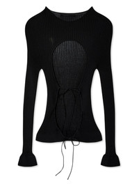 Jayla knitted top The Jayla top from Cecilie Bahnsen is spun from a cotton blend, and enclosed with signature wisp thin bows at the back Highlights - Black - Cotton blend - Knitted construction - Ribbed knit - Cut-out detailing - Round neck - Rear tie fastening - Long sleeves Imported Composition Cotton 78%, Polyamide 22%