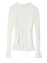 Jayla knitted top The Jayla top from Cecilie Bahnsen is spun from a cotton blend, and enclosed with signature wisp thin bows at the back Highlights - White - Cotton blend - Ribbed knit - Cut-out detailing - Round neck - Rear tie fastening - Long sleeves Imported Composition Cotton 78%, Polyamide 22%