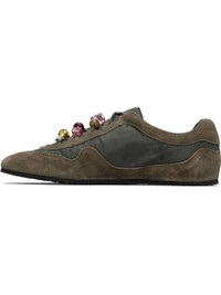 Low-top suede and canvas sneakers. · Graphic beads and logo applique at lace-up closure · Padded tongue and collar · Suede lining · Treaded crepe rubber sole Supplier color: Olive Upper: leather, textile. Sole: rubber. Made in Portugal 261002F128003
