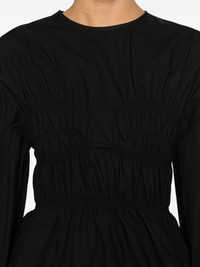 long sleeve stitch top Highlights - Black - Ruched detailing - Long sleeves - Tie fastening - Round neck - Gathered front Imported Composition Cotton 100% Washing instructions Machine Wash