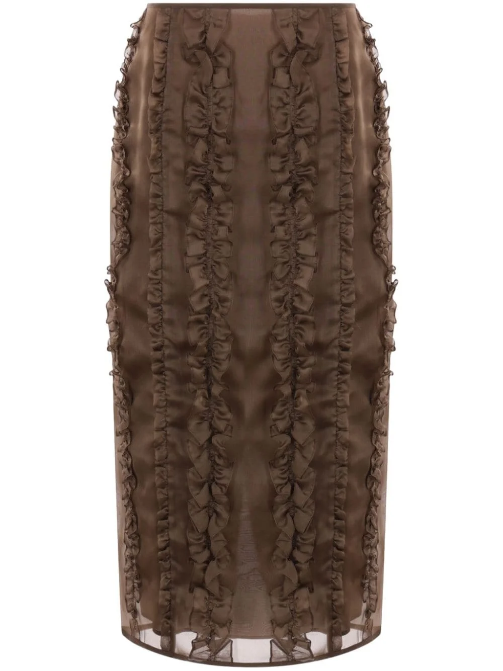 Ocean midi skirt Highlights - Earth brown - Silk - Organza - Semi-sheer overlay - Concealed rear zip fastening - High-waisted - Ruffled detailing - Rear slit - Satin lining - Straight hem - Mid-length Imported Composition Lining: Viscose 95%, Spandex/Elastane 5% Outer: Silk 100%