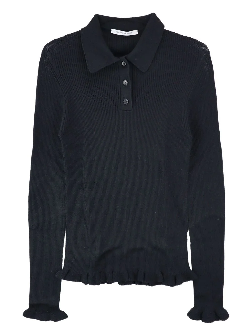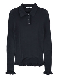 ruffle-hem ribbed polo top Highlights - Black - Button placket - Long sleeves - Ruffle cuffs and hem - Ribbed texture Made in Italy Composition Merino 100% Washing instructions Hand Wash