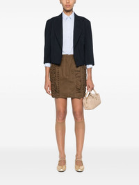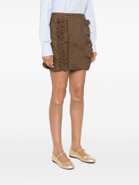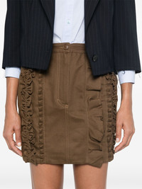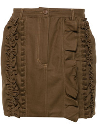 Odin mini skirt Highlights - Cedar brown - Cotton - Denim - Contrast stitching - Ruffled detailing - Belt loops - Two diagonal pockets to the sides - Two rear patch pockets - Floral embroidery to the rear - Straight hem - Front button and zip fastening Imported Composition Cotton 100% SIZE & FIT Model measurements Height 5 ft 10 in(1.78 m) Bust/Chest 33.07 in(84 cm) Hips 36.61 in(93 cm) Waist 24.8 in(63 cm) FittingInformation This mini-length skirt is intended to be worn just below the waist Sturdy and hard-wearing, this denim piece offers no stretch This piece fits true to size – take your usual size
