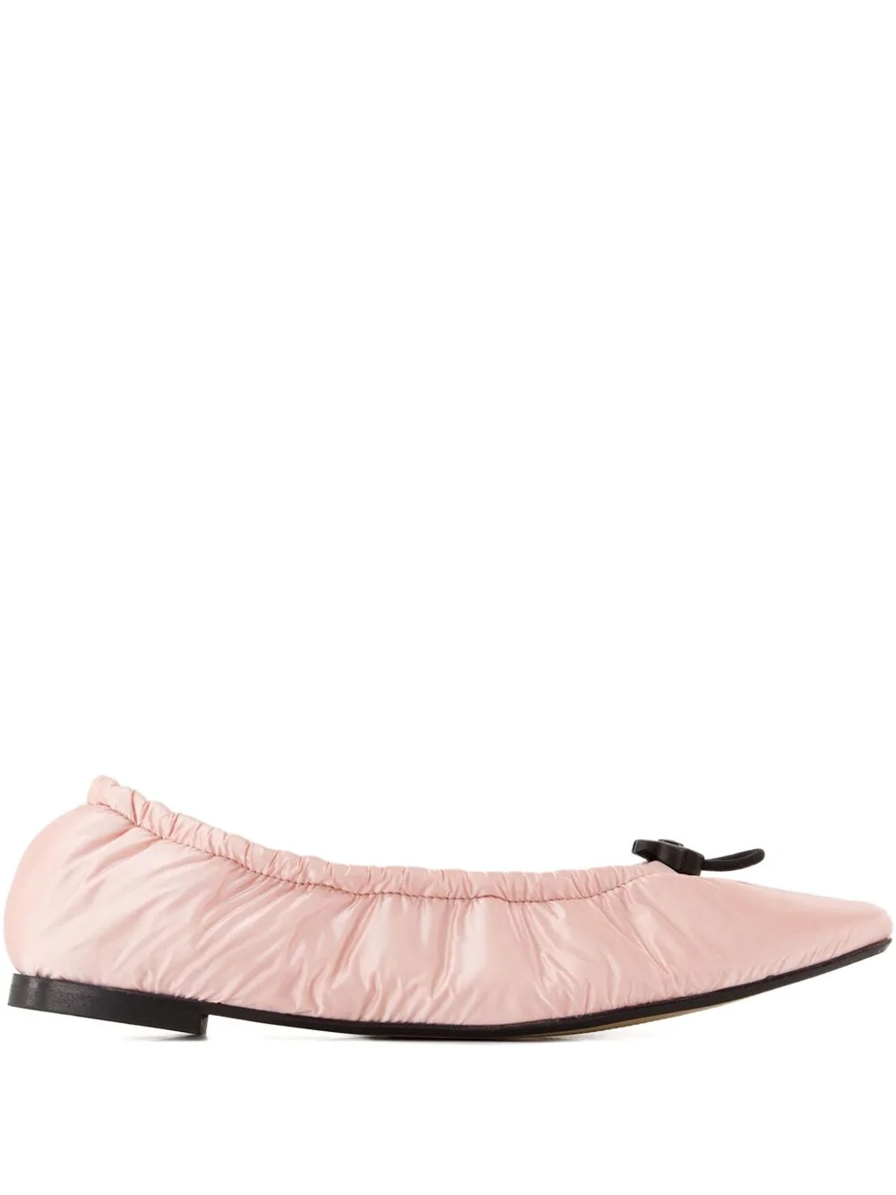 Orbella ballet flats Highlights - Pastel pink - Gathered detailing - Square toe - Bow embellishment - Flat sole Imported Composition Lining: Polyester 61%, Cotton 39% Outer: Polyester 100% Sole: PVC 97%, Rubber 3%