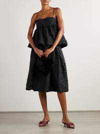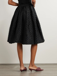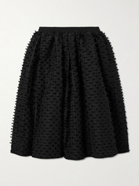 This 'Mala' skirt from Cecilie Bahnsen's Pre-Fall '25 collection is a gorgeous example of how the label plays with shape and texture. Made from fil coupe shell, it's pleated below the elasticated waist, creating plenty of volume, and has handy pockets at the side. Pair yours with the coordinating 'Babette' top. Size & Fit - Fits true to size, take your normal size - Midi-length, designed to be worn just below the natural waist - Lightweight, non-stretchy fabric - Model is 177cm/ 5'10" and is wearing a UK 8 Model measurements: - Bust: 86cm/ 34" - Waist: 65cm/ 25.5" - Hip: 90cm/ 35.5" Details & Care - Black fil coupe shell - Slips on - 100% polyester; lining: 73% acetate, 27% silk - Fully lined - Dry clean