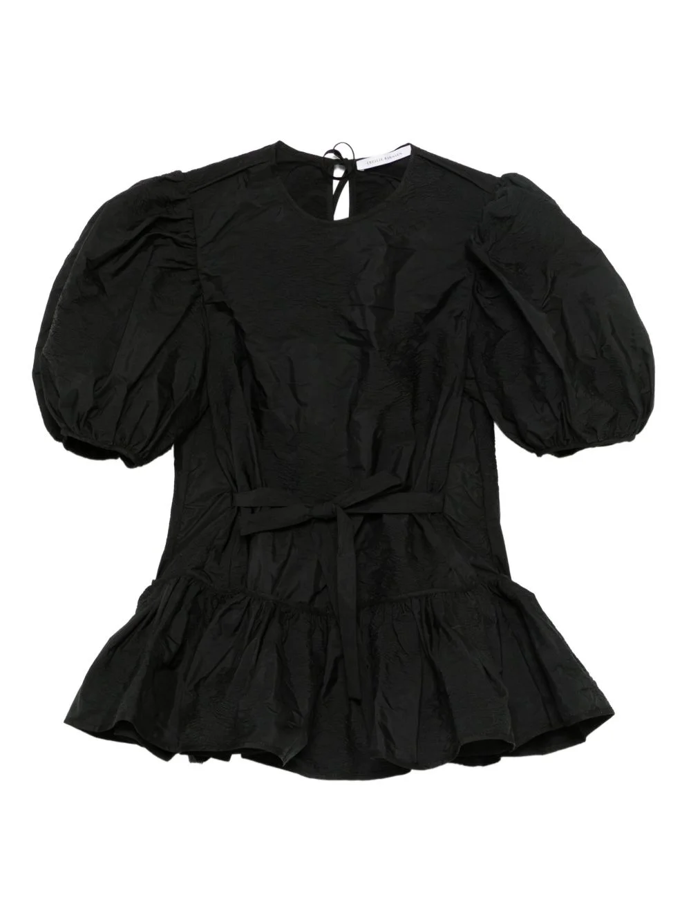 puff-sleeve blouse Highlights - Black - Round neck - Short puff sleeves - Ruffled hem - Rear keyhole fastening Imported Composition Fabric 100% SIZE & FIT Model measurements Height 5 ft 8 in(1.73 m) Bust/Chest 29.92 in(76 cm) Hips 33.07 in(84 cm) Waist 23.22 in(59 cm) Washing instructions Read Manufacturer Guidelines