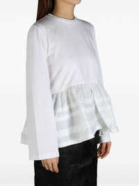 ruffled t-shirt Highlights - White - Long sleeves - Ruffled detailing - Long sleeves - Horizontal stripe print Made in Italy Composition Cotton 90%, Elastane 10%