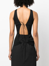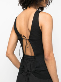 tie-fastening sleeveless dress Danish designer Cecilie Bahnsen is known for pairing a minimalist design style with elegant detailing. Seen on this sleeveless dress, the garment is presented in a monochromatic hue with a refined tie-fastening detail at the back. Highlights - Black - Cotton - Scoop neck - Sleeveless - Open back - Rear tie fastening Made in Italy Composition Cotton 78%, Polyamide 22% SIZE & FIT Model measurements Height 5 ft 10 in(1.77 m) Bust/Chest 31.49 in(80 cm) Hips 36.22 in(92 cm) Waist 22.44 in(57 cm) FittingInformation Designed for a slim fit that sits just away from the body offering a close yet comfortable fit The tie fastening gives an adaptable and personalised fit Made with a midweight knit, this piece offers some stretch This piece fits true to size – take your usual size Washing instructions Machine Wash