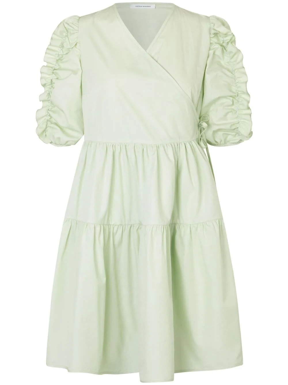 Vermont cotton midi dress Highlights - Light green - Cotton - Ruffled detailing - Pleat detailing - Crossover neck - Side tie fastening - Short sleeves - Tiered skirt - Mid-length - Straight hem Imported Composition Cotton 100% Washing instructions Dry Clean Only