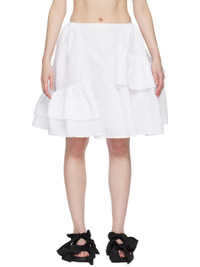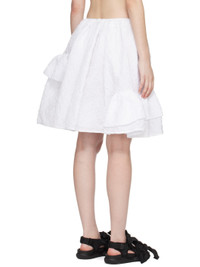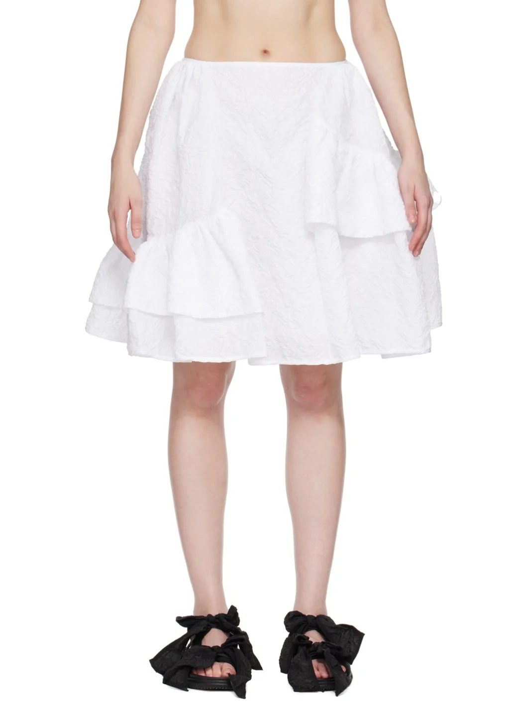 Polyester-blend matelasse skirt. Ruffled trim throughout. · Asymmetrical construction · Concealed zip closure at back · Full satin lining Supplier color: White Body: 89% polyester, 11% polyamide. Lining: 53% cupro, 47% polyester. Made in Latvia 241002F090001