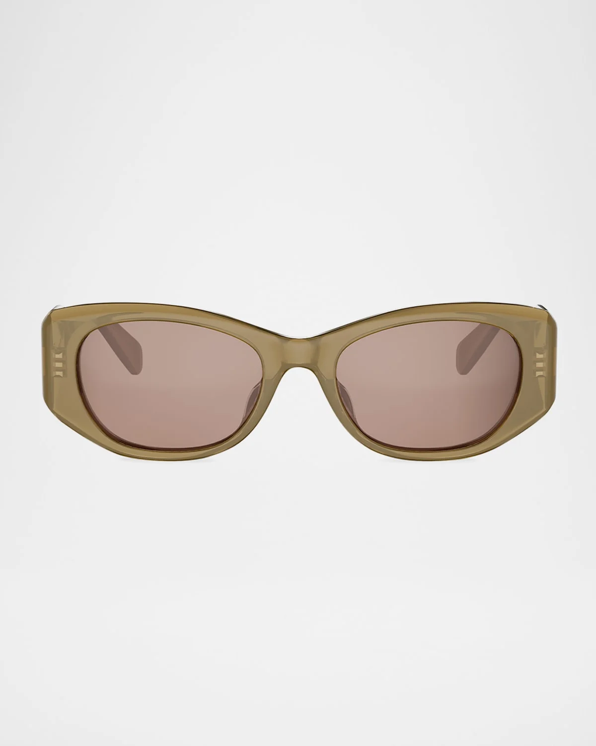 Celine oval sunglasses with underlacquered logo on both temples Eye/bridge/temple (in mm): 5419140 Monochromatic lenses Saddle nose bridge Wide, tapered arms Acetate Hand wash 100% UVA/UVB protection Made in Italy