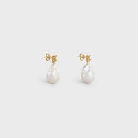 DETAILS TOTAL LENGTH 1 IN (2.5 CM) BRASS AND CULTURED PEARL NICKEL FREE CELINE PARIS SIGNATURE ENGRAVED FOR PIERCED EARS REFERENCE : 46W356BPA.01GI