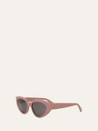 Celine "Bold 3 Dots" cat-eye sunglasses in acetate Lens/bridge/temple (in mm): 53-17-145 Solid lenses Saddle nose bridge Logo on temples Wide, tapered arms 100% UVA/UVB protection Made in Italy Proposition 65 warning for California residents Online Inquiries: BGS21_D5E1S| Store Inquiries: #4804406