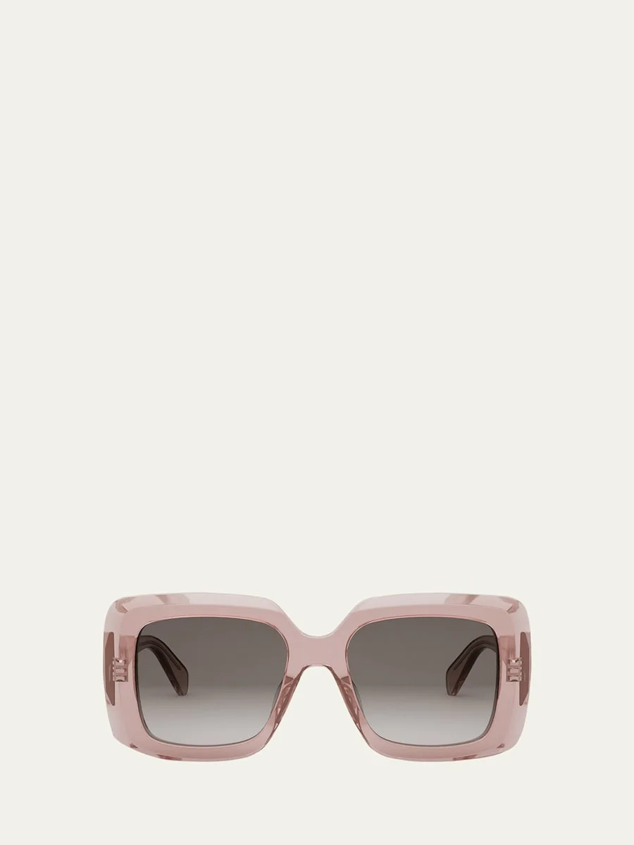 Celine bold square sunglasses in acetate, nylon, and polyamide Lens/bridge/temple (in mm): 6219105 Solid lenses Saddle nose bridge Threedot accent near hinges Logo on temples Thin, tapered arms Hand wash 100% UVA/UVB protection Made in Italy